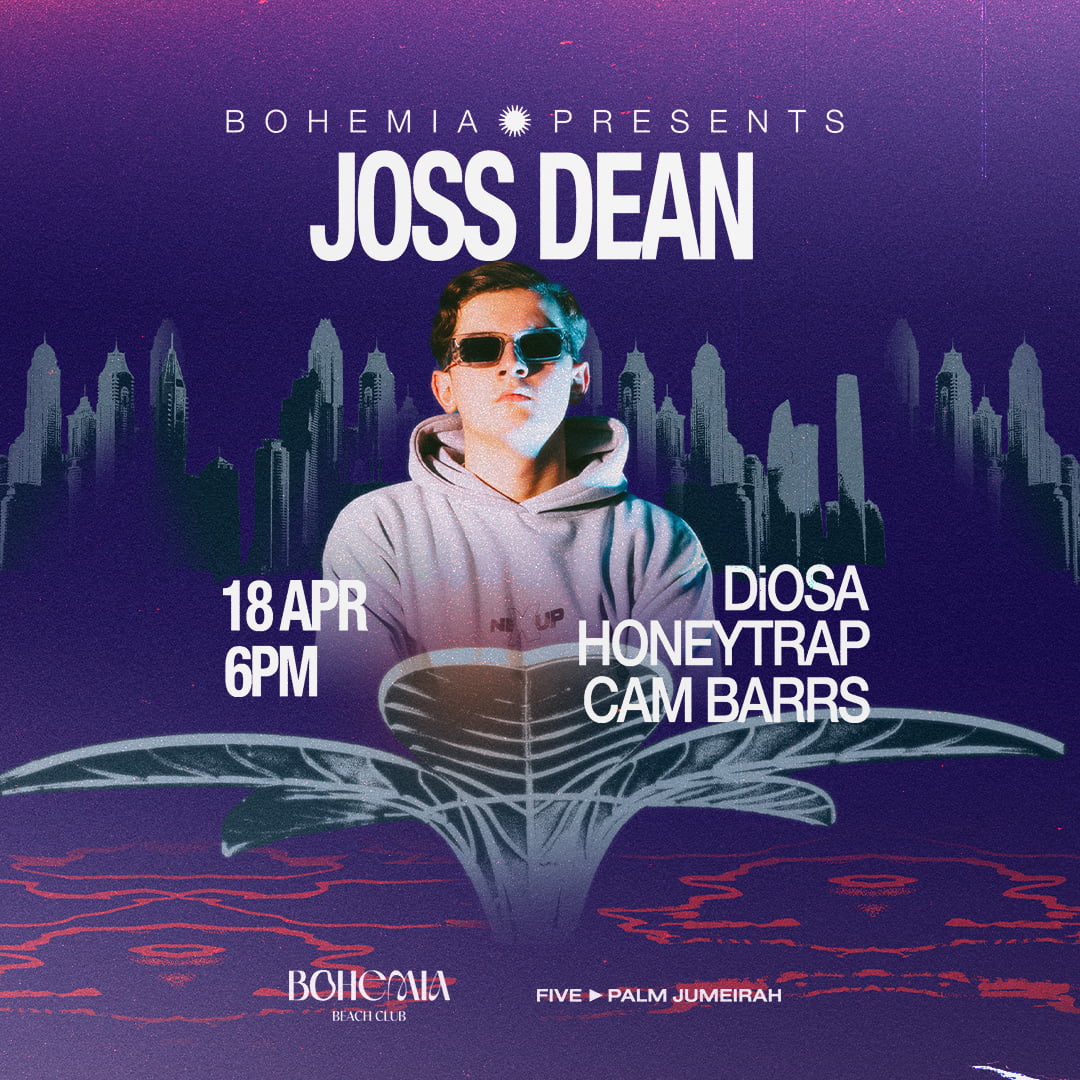 Joss Dean takes over Bohemia with groove-led house, built on rhythm and energy. The London-based DJ and producer is making waves across the UK underground, with standout sets at venues like Studio 338 and The Warehouse Project, and his breakout track “Was I Loved?” reaching the UK Official Charts and over 600,000 streams. His sets focus on flow and keeping the dancefloor moving from start to finish.