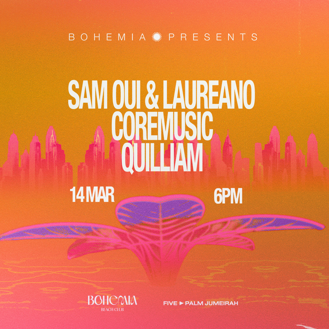 Sam Oui & Laureano land at Bohemia Presents on 14 March, delivering groove-led house energy to Dubai’s most iconic beachfront.